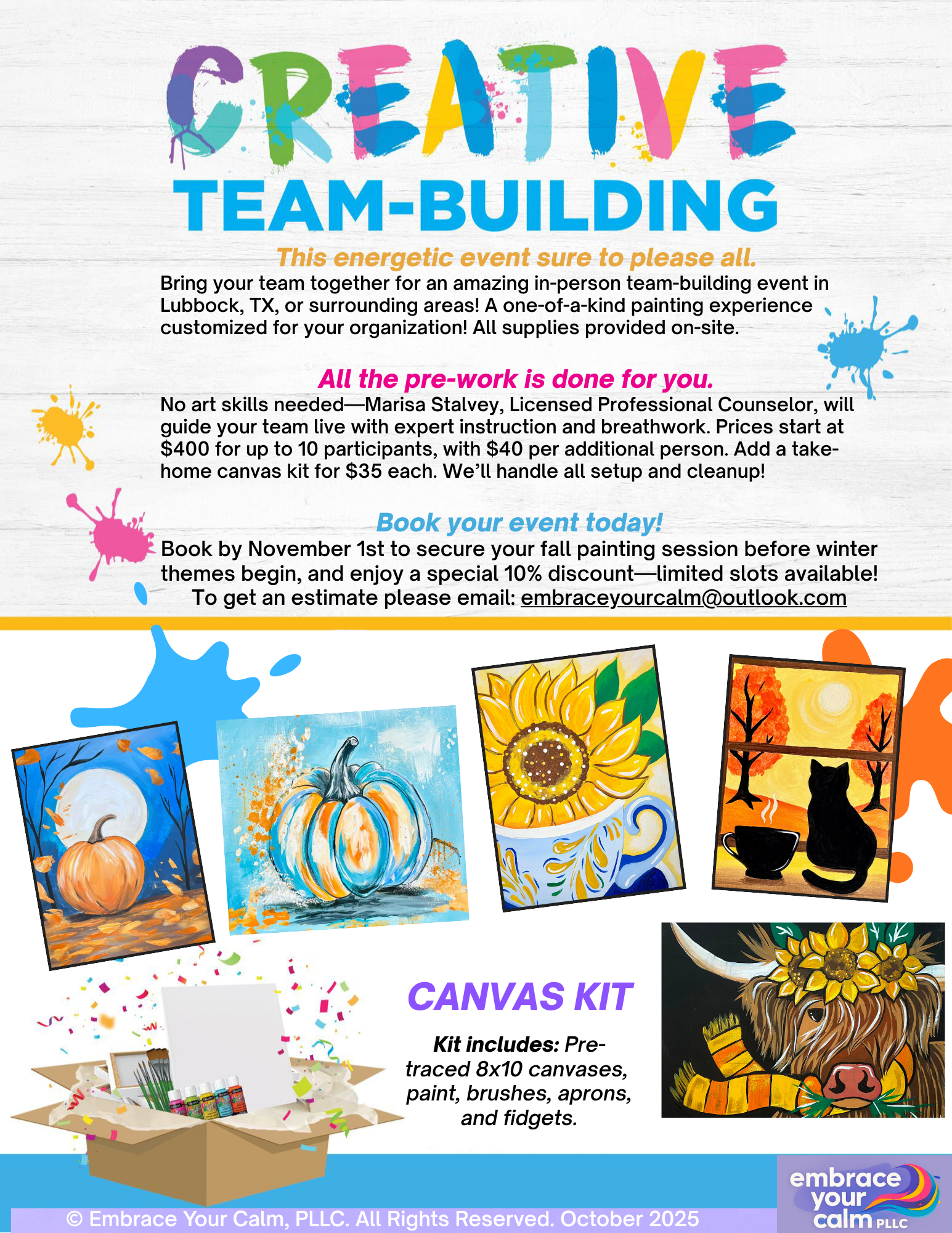 Workshops + Art Kits Categories: Select a Category Mindful Art Kits Workshops Workshops + Art Kits Mindful Art Kits | Workshops | Mindful Art Kit: Mr. Nutcracker $25.00 Mindful art kit: The Raccoon Who Stole Christmas $25.00 Calming Canvas: Holiday Highlander $35.00 Sold out Holiday Paint-at-Home Kits – Only $25! $0.00 Mindful art kit: Holiday Highlander $25.00 Mindful art kit: Winter Cardinal $25.00 Mindful art kit: Winter chapel $25.00 Mindful art kit: Red Guitar $25.00 Mindful art kit: Winter vintage van $25.00 Mindful art kit: 3 Winter Owls $25.00 Mindful art kit: Magical Tree $25.00 Mindful art kit: Winter moose and friend $25.00 Mindful Art kit: Winter Hoot $25.00 Mindful Art kit: Mystic Deer $25.00 Mindful Art kit: Mrs. Nutcracker $25.00 Mindful Art kit: Cup of Christmas $25.00 Mindful Art Kit: Honey the Christmas Highlander $25.00 Mindful Art Kit: Polar Bear family $25.00 Mindful Art kit: Holy Family $25.00 Mindful Art kit: Hooked on Christmas $25.00 Mindful Art kit: Every woman Christmas $25.00 Mindful Art Kit: Every woman winter $25.00 Mindful Art Kit: Christmas Donkey $25.00 Mindful Art Kit: Angel $25.00 Mindful Art Kit: Baby it's cold outside snowman $25.00 Creative Team-Building Workshops $400.00 Watercolor Art Kit: Highland cows $15.00 Mindful Art Kit: Harvest Purple $25.00 Mindful Art Kit: Ghost in the Forest $25.00 Mindful Art Kit: Twilight Raven $25.00 Mindful Art Kit: Cat and Moon $25.00 Mindful Art Kit: Fall Woman $25.00 Mindful Art Kit: Every woman---FALL $25.00 Mindful Art Kit: Autumn Blue $25.00 Mindful Art Kit: City Cat $25.00 Mindful Art Kit: Fall truck & Pumpkin $25.00 Mindful Art Kit: Harvest Blue $25.00 Mindful Art Kit: Pumpkin and Moon $25.00 Mindful Art Kit: Mountain and Flowers $25.00 Mindful Art Kit: Magical Pumpkin $25.00 Mindful Art Kit: Bloom and Bottle $25.00 Mindful Art Kit: Cup of Sunshine $25.00 Mindful Art Kit: Morning Meow $25.00 Mindful Art Kit: Pumpkin Glow $25.00 Mindful Art Kit: Fall van vibes $25.00 Calming Canvas: Cute Ghost (10/25 @ 11:00AM) $35.00 Sold out Calming Canvas: Autumn Chapel (10/04 @ 10:00AM) $30.00 Sold out Calming Canvas: Made to Create (09/27 @ 11:00am) $35.00 Sold out Mindful Art Kit: Red Mushrooms $25.00 Mindful Art Kit: Midsummer Highland(magenta) $25.00 Mindful Art Kit: Midsummer Highland $25.00 Mindful Art Kit: Orange scarfed Highland $25.00 Mindful Art Kit: Pink scarfed Highland $25.00 Mindful Art Kit: Honey the Highland $25.00 Calming Canvas: Bohemian Moon (08/30 @ 11:00am) $35.00 Sold out Calming Canvas: Midsummer Highland (07/31 @ 6:00pm) $35.00 Sold out Calming Canvas: Cup of Sunshine (07/12 @ 2:00pm) $35.00 Sold out Growth Mindset $75.00 Sold out Emotional Regulation $75.00 Sold out Anger Transformation Workshop $75.00 Sold out 5 Keys to Raising Resilient Kids & Teens Workshop $75.00 Sold out 5 Claves para criar niños resilientes $75.00 Sold out